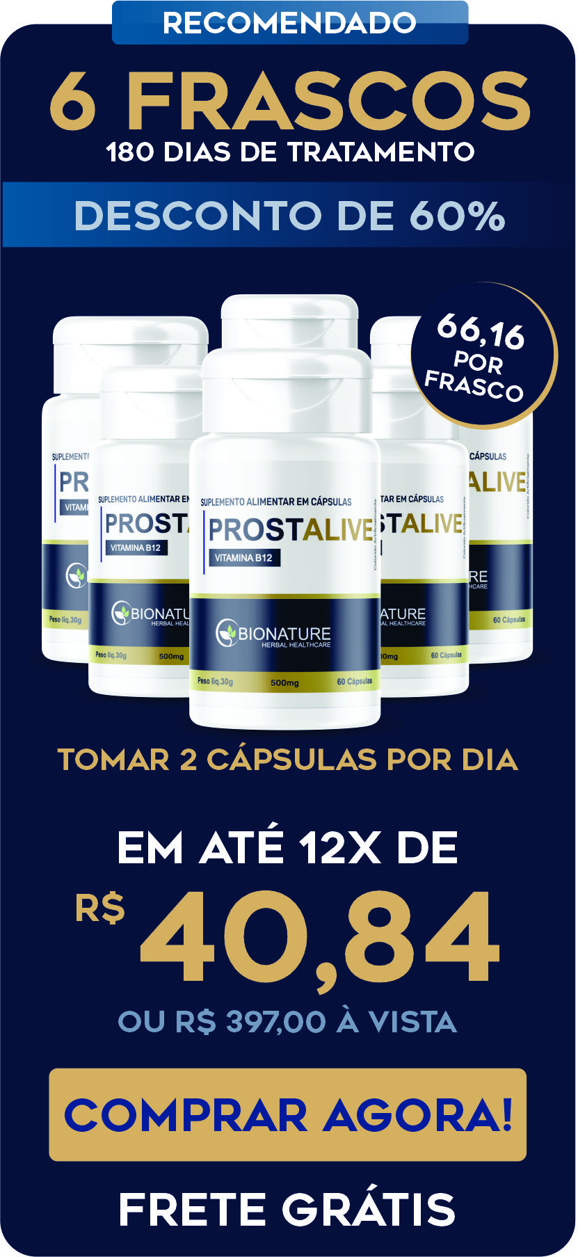 Não. Por ser um produto 100% natural, sem adição de substâncias químicas agressivas, o ProstaLive não apresenta efeitos colaterais e pode ser usado com segurança no dia a dia.